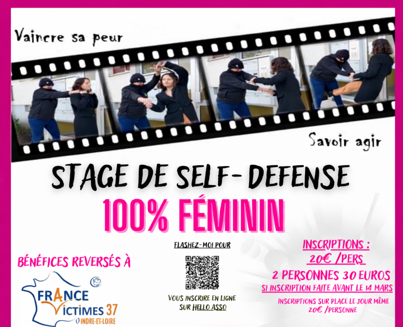 Rejoins-nous samedi 21 mars 2026 pour 3h30 de self-défense. Amène des amies, c'est moins cher…